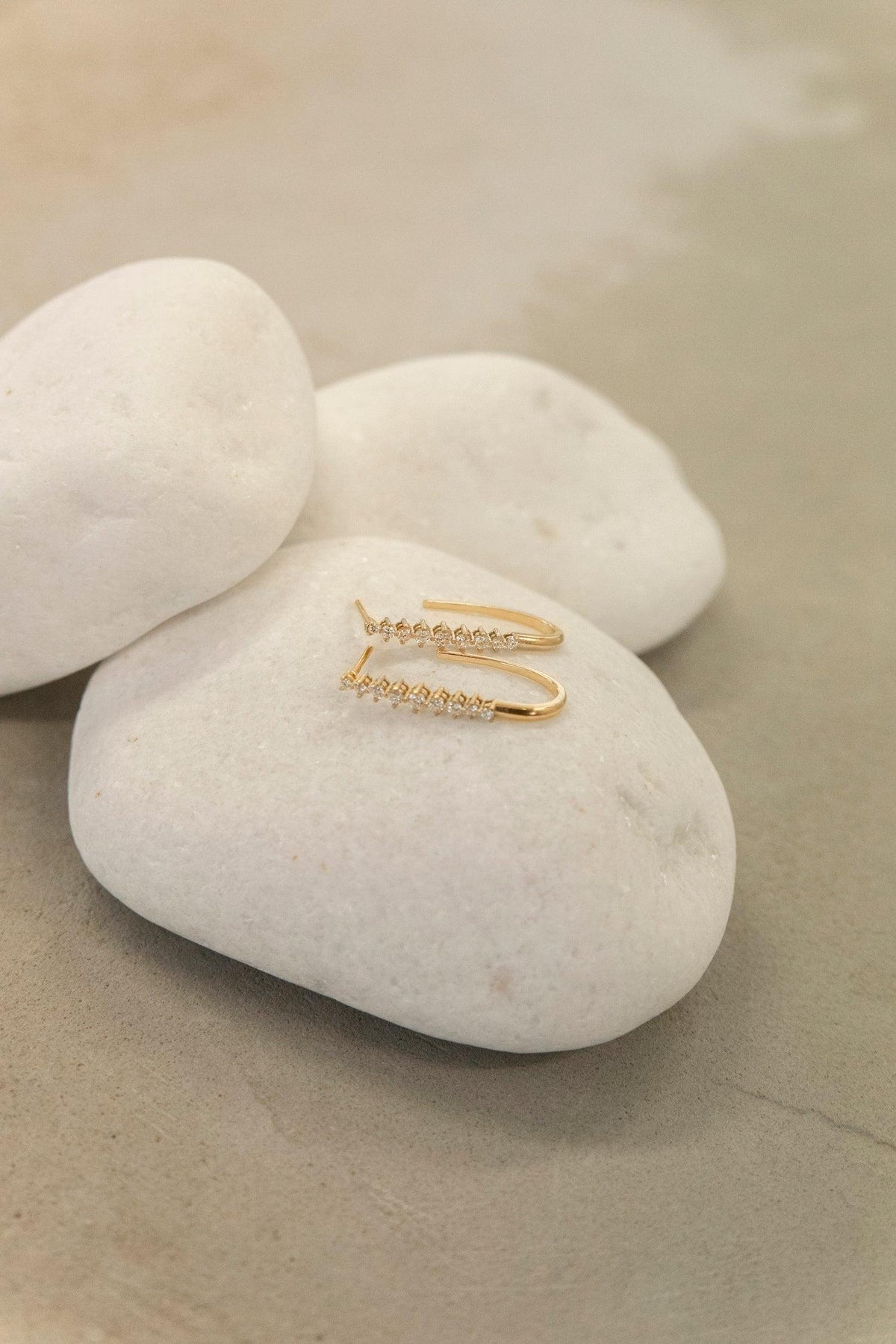 The Mosaic Earrings showcase our sustainable lab-grown diamonds in a beautifully uniform, intricate pattern. The strong but subtle result is a representation of this art form in a classic and elegant partial hoop that is perfectly wearable for every day. Made from 100% recycled 14k gold and lab-grown diamonds.