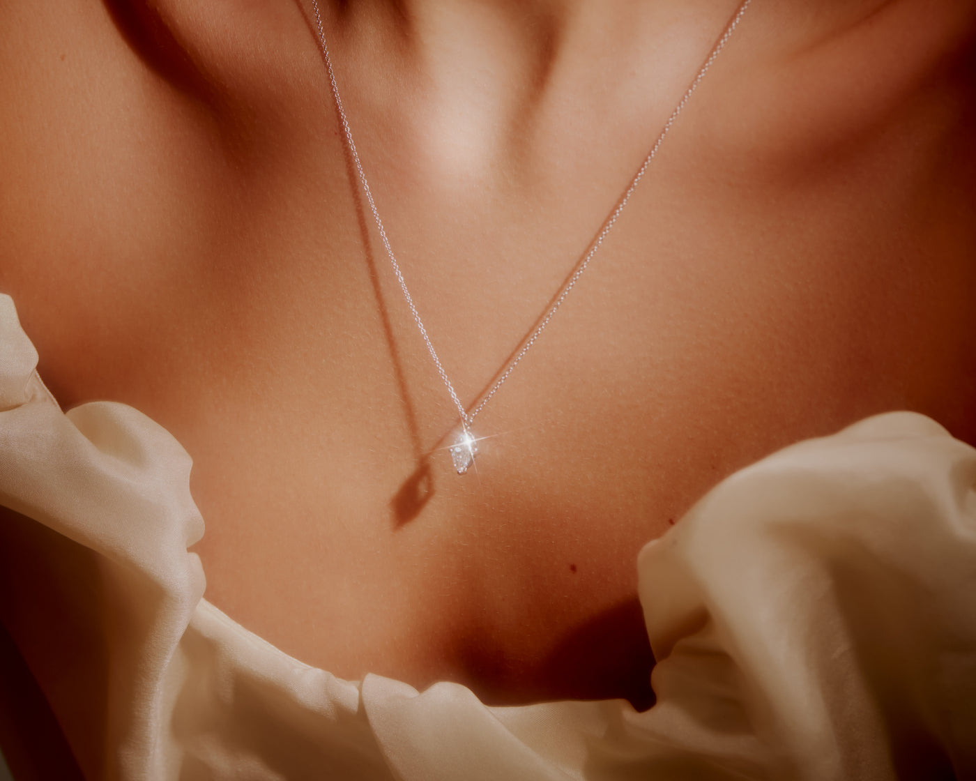 This limited-edition collection, Five Stones, honours each year of MATILDE’s evolution with a diamond cut chosen for its symbolic resonance. Each stone, Round, Marquise, Pear, Oval, And Emerald, rests on a delicate 1mm recycled gold cable chain, reflecting our unwavering commitment to sustainability and conscious luxury.